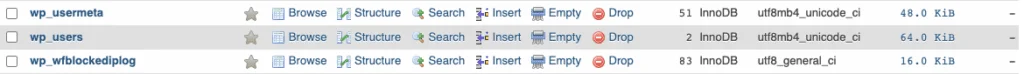 Locate the “wp_users” table: In the list of tables, find and click on the table named “wp_users” (the table prefix may vary depending on your WordPress installation).